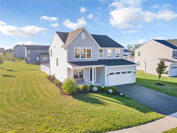 For efficiency, the home utilizes ENERGY STAR-rated systems (cooling, heating, appliances, windows) and a tankless hot water heater. Completing the interior is a full, unfinished basement with upgraded Egress, offering substantial, versatile space. The exterior architecture features an attached 2-car garage, an upgraded extended covered front porch with soffit lighting, maintenance-free vinyl siding, and a fully fenced yard situated on a 0.45-acre lot. It is conveniently located for access to local amenities, expressways, shopping, restaurants, and the Finger Lakes. Delayed negotiations until October 13th, 2025, at 12:00 PM.