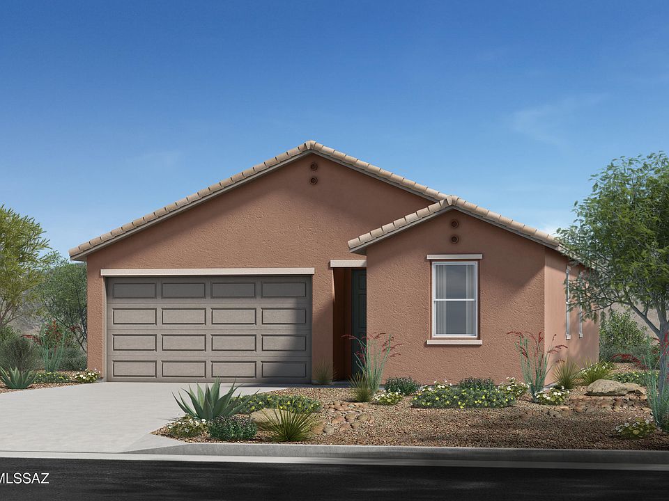This single-story home boasts 9-ft. ceilings and upgraded porcelain tile flooring throughout. Cook and food prep in the stylish kitchen, which showcases white painted maple cabinets, granite countertops, an island, pantry, and Whirlpool(r) stainless steel appliances. The relaxing primary suite offers a walk-in closet, extended dual-sink vanity, and shower with cultured marble surround. The covered back patio provides space to unwind and entertain. Eligible for up to $5,000 toward rate buy down or closing costs. Must use seller's preferred lender KBHS for financing. Price includes discount predicated on using Seller's preferred lender KBHS. Projected completion March 2025.
