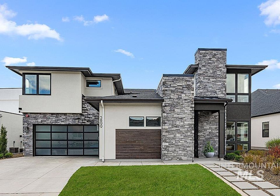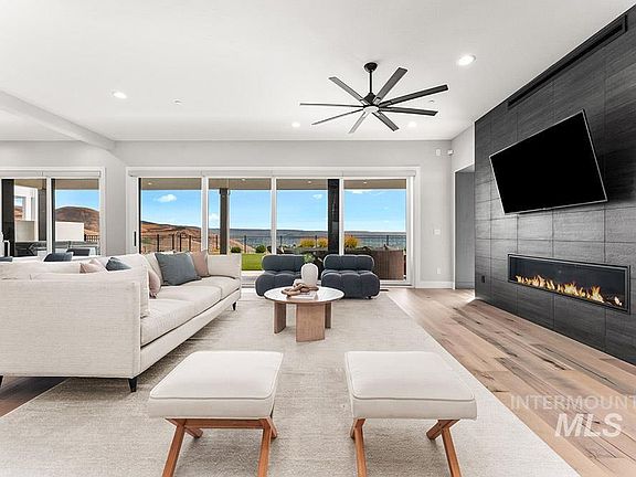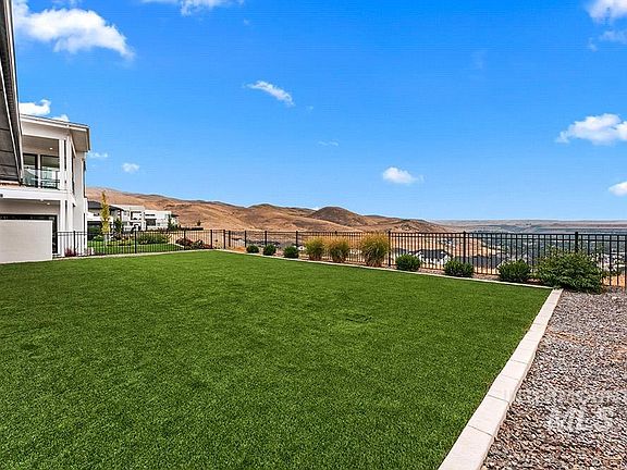 Modern luxury in Harris North! Elevated above Boise, this extraordinary home offers the perfect blend of elegance, function, & outdoor access. The community seamlessly connects to miles of foothill trails, a pool, & is just minutes from SE Boise amenities and the Greenbelt. The striking design features a spacious open layout with wood flooring, designer lighting, and expansive telescoping glass doors that frame sweeping foothill views. The great room is centered around a floor-to-ceiling fireplace and opens to a private moody lounge. The kitchen showcases two-tone ceiling-height cabinetry, zellige tile backsplash, dual ovens and dishwashers (Wolf Sub Zero), and an island for entertaining. The luxurious primary suite includes dual walk-in closets, a freestanding soaking tub, dual vanities & a private flex room perfect for a home gym or studio. The backyard is a private sanctuary with a large covered patio, hot tub & turf lawn, positioned to take in the breathtaking views.