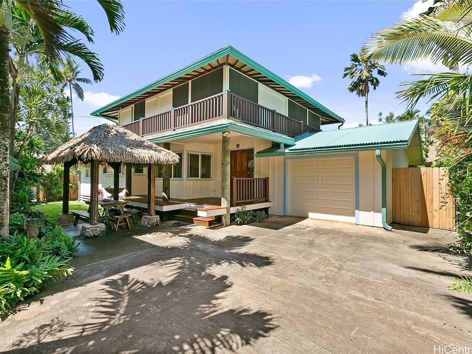 Welcome to this hidden gem in Sunset Point, a highly sought-after area on the North Shore. This exceptional custom 2-story home is meticulously cared for and offers a unique living experience just steps away from the beach. Situated just three streets in from Kam Hwy and one home back from the beach, this property offers the perfect location for enjoying the North Shore lifestyle. A short 2-minute walk in either direction takes you to the world-famous Sunset Beach, where you can indulge in swimming, surfing, fishing, or take a leisurely evening stroll under breathtaking sunsets. Step inside and be greeted by beautiful Indonesian hardwood flooring. The original vintage plantation cottage was thoughtfully remodeled expanding the first-floor kitchen, living room, and one of the bedrooms. The second floor main suite, is a masterfully crafted custom Indonesian built hardwood bungalow that creates a true tropical living ambiance. Recent upgrades, include, new tile in the first and second-floor bathrooms and the second-floor lanai. Beautiful tropical garden, complete with an automatic sprinkler system and lush lawns, adds to the overall appeal of the property.