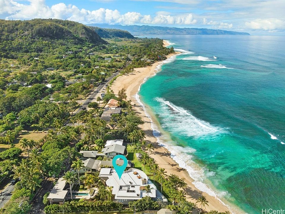 AN AWE-INSPIRING MODERN BEACHFRONT RESORT… Enjoy front row seats to unparalleled ocean, coastline & sunset views year-round from this spectacular beachfront estate located on sought after Sunset Beach, home to one of the greatest Triple Crown surfing events in the world. From the moment of arrival, one is spellbound by tropical landscaped grounds, plunge pool w/water feature & pathways leading to one of Oahu’s most remarkable residences. Welcome to a contemporary masterpiece w/vast open living spaces, soaring ceilings, sun filled walls of glass that open to a sprawling seaside patio revealing panoramic ocean vistas & the true meaning of indoor/outdoor living. Enjoy numerous lounge & entertaining spaces w/warm tones of inlaid hardwood ceilings which compliment magnificent poured in place concrete walls w/cast moldings & intricate details throughout. The Primary Suite offers amazing seascapes, dual dressing areas, walk in shower, soaking tub & private balcony. Sizeable library, hm office, multiple outdoor lanais + a spa/wellness rm, are just a sampling of what life at this striking coastal residence offers. Sep. caretaker’s apt + storage for all of your favorite beach gear & more!