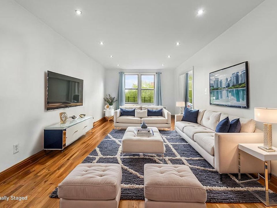 You'll be greeted by sunlight from the large east-facing windows in this remarkable Junior 4 co-op unit. The living room features recessed lighting, beautifully maintained original hardwood flooring, incredible storage space with 3 closets and an additional room that is separated by pocket doors. It is currently being used as a dining area, but can easily be converted to a home office, additional bedroom or whatever you desire. The bedroom, which has a walk-in closet, is big enough to accommodate a ”King" sized bed.