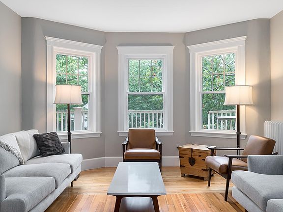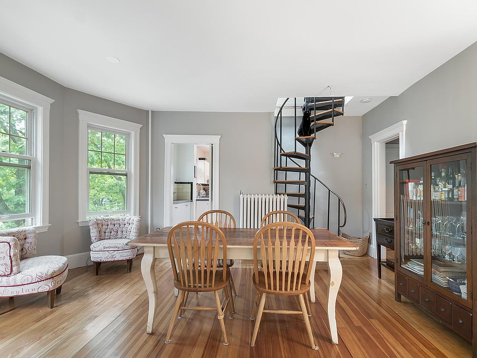 Live atop one of Brookline's most historic and desirable neighborhoods in a 4 Bedrooms + Den. 2,014 sqft PENTHOUSE CONDO. Downstairs: Spectacular sunlight, spiral staircase, oak floors, open concept living and dining rooms, window-wrapped study, 2 bedrooms, pantry, kitchen, full bath. Upstairs: Gorgeous tree-top views, walnut hardwood floors, French doors, skylights, exposed beams, cathedral ceilings, reading nook, massive walk-in closet, 2 large bedrooms, full bath. Newly refinished 250-square foot, wrap-around balcony for dining, hammocking, cocktails. Conveniently across from Heath School and playgrounds, 5-minute walk to Green Line, Beacon St. for bars and dining, Warren & amp; Eliot Park for playgrounds, tennis, basketball. Chestnut Hill, Fisher Reservoir for walking or running. Top-loading W/D and generous closet space in unit. Free overnight parking off-hours at Heath and 24/7 weekends, holidays, and summer vacations. 10/1 move in. First month rent and security deposit. 12 month Lease. One month broker fee.
