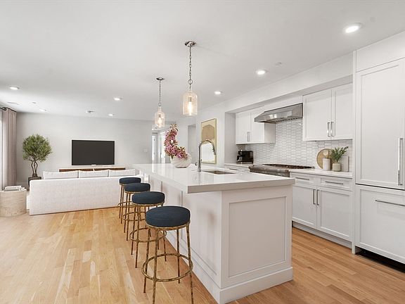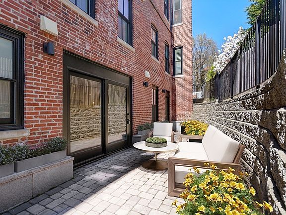 Newly constructed in 2020, this garden residence with 2 beds / 2.5 baths & deeded parking is steps from Schick Park on Aspinwall Hill in Brookline. Boutique luxury building with exquisite finishes & three sides of oversized Pella windows, prioritizing light & design. The unit layout exceeds by including a wonderful all-inclusive living room, dining & eat in kitchen. The open chef’s kitchen features custom white cabinets by Appleton, quartz counters & Thermador appliances. The large island is equipped w/ an under-counter microwave & ample cabinet storage. The primary bedroom is well-appointed with a walk-in-closet, en-suite marble bath, dual vanity, radiant heated floors & glass shower door enclosures. The second full bath is ideally located adjacent to the 2nd bedroom. Large private patio just outside the living & dining area. Hardwood floors, laundry & central AC. 1 deeded parking & bike storage outside condo. Steps to parks, Green Line T, shopping & dining in Washington Square.