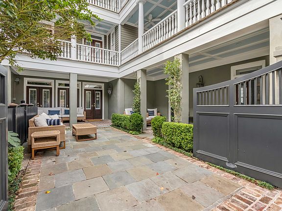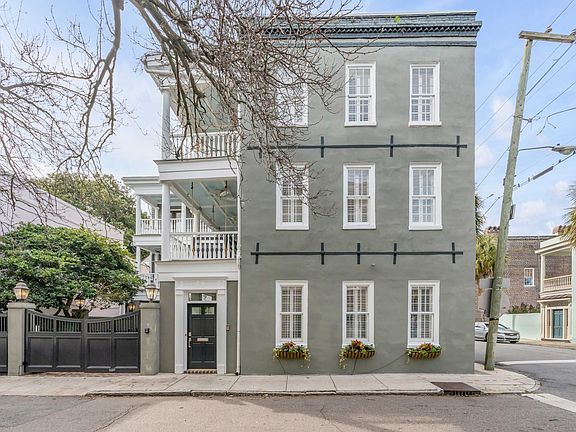 This exquisite historic home is nestled on the corner of Anson and Society Streets in the heart of the charming residential neighborhood of Ansonborough. The three-level home was built in 1850 and has been meticulously preserved and updated. It also boasts an ideal location within walking distance of King Street, offering easy access to an array of shops, restaurants, galleries, parks, and more. As you enter through the gated entrance, you are greeted by a blue stone courtyard and brick porches, a perfect spot for outdoor entertaining. Step inside to discover a beautifully updated interior featuring hardwood floors, tall ceilings, and an abundance of natural light. The spacious living room on the main floor is adorned with a fireplace, detailed trim, and large windows,seamlessly flowing into the adjoining dining room. The spacious kitchen is equipped with granite counters, custom cabinets, high-end stainless appliances, and a center island. There is also great connectivity to the outdoor living space, with multiple sets of French doors opening to the courtyard. The expansive primary bedroom suite is located on the second floor with multiple sets of French doors opening to a private covered porch. The en suite bathroom features dual vanities, a tub, a separate shower, and a walk-in closet with custom storage. There is also an additional room on this floor, complete with a wet bar, en suite powder room, and access to a covered porch, a perfect retreat for an office, work out room or extra bedroom. Ascend to the third floor to find three additional bedrooms and two updated bathrooms, providing ample space for family or guests. This historic gem seamlessly blends timeless elegance with modern amenities, offering a rare opportunity to own a piece of Charleston's rich architectural heritage.