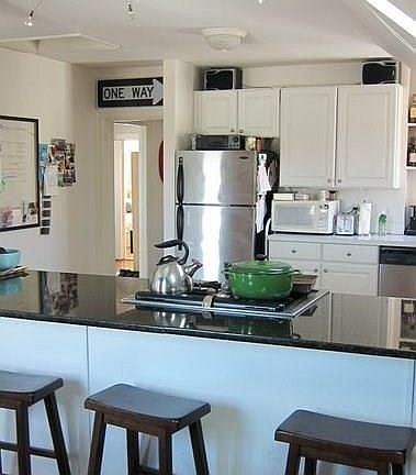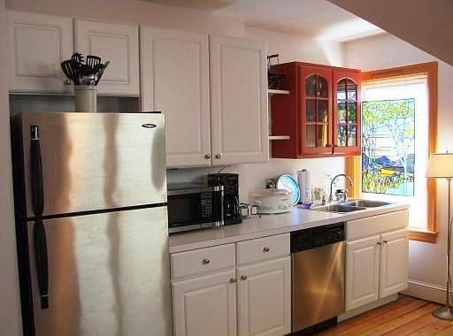 Beautifully updated 3rd floor condo with skylights, central air, hardwoods, private laundry, garage. Great kitchen with granite counters and breakfast bar overlooking large dining area. Private deck with views of Narragansett Bay. Pretty gardens. Close to RI, W & I and Hasbro Hospitals, Pawtuxet Village shops and restaurants.