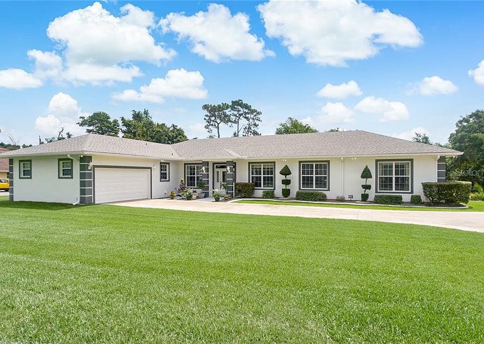 This beautiful Debary home in desirable Orlandia Heights has THE BEST of Everything--Open Floorplan, Gorgeous Pool and extra 1296 SF detached garage/workshop--all on one of the most beautiful 1-acre lots you've even seen! This custom-built home offers room for everyone--guests or other family members will enjoy having their own private space including a bedroom, huge family room, den/playroom and 1.5 baths. There is also an additional bedroom & dedicated office to enjoy. At the end of a long day, you can retreat to the beautiful owner's suite with luxurious bath with jetted tub, walk-in shower, double sinks and huge walk-in closet! The main living area of this house is the heart of this home and boasts an open floorplan--great for entertaining--including huge great room with gas fireplace, kitchen with 42" Birch cabinetry, granite counters, breakfast bar and formal dining area. Gorgeous finishes throughout including tile & laminate wood flooring, crown molding and tall ceilings! Tinker until your hearts content in the detached block workshop and park your boat too! Outside, relax on the covered lanai complete with ceiling fan and wired for TV or take a dip in the beautiful salt water pool with large patio area. No expense has been spared in the building of this home--Roof just 4 years old, crown moldings, CelTex Insulation, fully floored attic, Whole house GENERATOR, high efficiency A/C units, oversized septic, high end water softener, New HWH, high efficiency pool pumps and SO much more! With so much insulation the electric bills are LOW and with well & septic that is the only bill you'll have! You know what it doesn't have??? An HOA! Come to this oasis and fall in love!