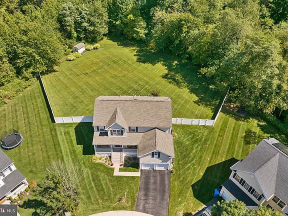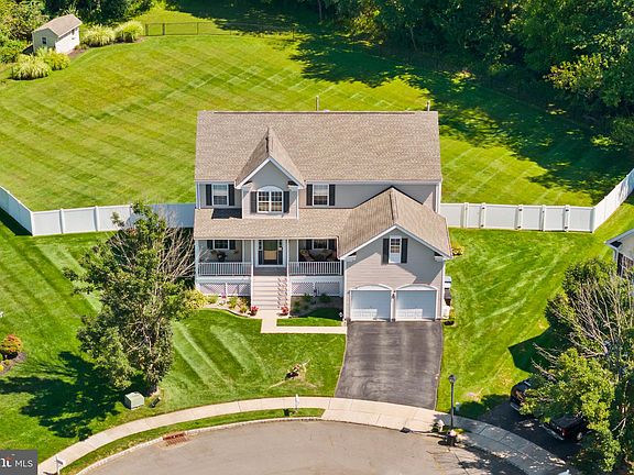 Welcome to this stunning Colonial 2610 model, perfectly situated on over 1.22 acres in a peaceful cul-de-sac. From the moment you step into the grand two-story foyer, you’ll feel the warmth and openness that define this beautiful home. The main level is designed for both everyday living and entertaining, featuring a formal living and dining room along with a gourmet kitchen complete with tall cabinetry, granite countertops, an island breakfast bar, a coffee station, and a sunny eating area. Sliding doors open to a spacious Trex deck, perfect for summer barbecues and gatherings. The yard backs up to preserved township land, ensuring nothing will ever be built behind it, and is fully fenced—vinyl in the front and chain link in the back. Just steps away, the inviting family room with a gas fireplace offers a cozy retreat, while a powder room, laundry with garage access, and a versatile room that can serve as a bedroom or playroom complete the main level. Upstairs, retreat to the luxurious master suite with its private sitting room or office, walk-in closet, and spa-like bath featuring a Jacuzzi tub, dual marble sinks, and a separate shower. Three additional spacious bedrooms and a full hall bath provide comfort and flexibility for family or guests. The unfinished basement offers even more potential, with space for a gym, playroom, or media room. This home has been thoughtfully updated and maintained, offering peace of mind with major upgrades that include a new roof (2018), new upstairs air conditioner and gas furnace (2019), washer and dryer (2016), sump pump (2019), carpet on stairs and hallway (2021), and luxury vinyl flooring downstairs (2019). A full home energy project completed in 2015 added a new hot water heater, furnace, central A/C, blown-in attic insulation, and garage sealing for efficiency. Additional features such as a wireless alarm system, front and side lawn irrigation, and ceiling fans in all bedrooms and the family room make this home truly move-in ready. Ideally located, this home is just minutes from Joint Base McGuire-Dix-Lakehurst (JBMDL), major highways, train stations, shopping, farmers’ markets, and dining. With its inviting layout, countless upgrades, and serene setting, this home is designed for modern living—don’t miss the opportunity to make it yours!