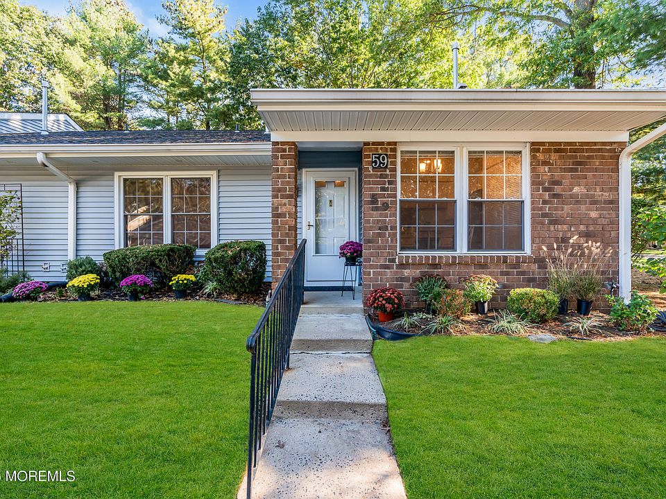 Prime 2 BR, 2 BA spacious end unit. Ranch style VILLA model, conveniently located near the clubhouse. Beautiful new wall to wall carpeting in the living room, bedrooms and closets. Freshly painted and move-in ready. Updated kitchen boasts new stainless steel appliances & an eat-in area. Light-filled sunroom with sliders offers seamless access to the rear patio, ideal for morning coffee or evening entertaining. The spacious primary suite features a large walk-in closet & an ensuite bath. On-site activities include pool, tennis, pickleball, bocce courts and a club room for socializing and entertaining. Easy access to the dining and entertainment of downtown Red Bank and nearby beaches. Convenient to GSP, trains, and buses. FYI, the color of the grass has been enhanced.