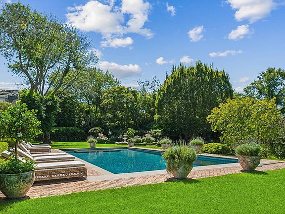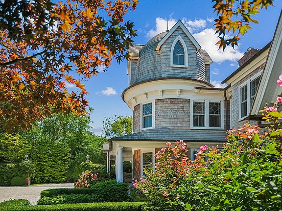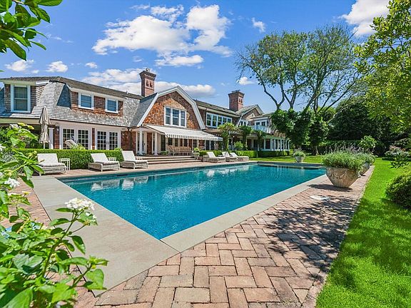 Enjoy timeless Hamptons elegance at this gated eight-bedroom estate with a tennis court, heated Gunite pool, spa, and separate guest house-all set on 2.8 lush acres in the heart of Southampton's prized Estate Section. Originally built in 2012 and masterfully designed by esteemed architect John David Rose, this 10,800 sq. ft. shingle-style home offers refined living across three levels. Inside, the home is rich with detail: hand-painted murals, five fireplaces, and dramatic spaces including a double-height living room, formal dining with French doors to a sunroom, and a custom chef's kitchen with top-tier appliances and a cozy window-wrapped breakfast nook. A paneled library, game room, and dedicated pool lounge complete the first floor. Upstairs, the primary suite offers a private balcony, dual walk-in closets, and elegant bath. Three additional en-suite bedrooms and a whimsical turreted office await on the upper levels, while the finished lower level hosts a wine cellar, gym, laundry, and private guest suite with its own entrance and outdoor sitting area. Beyond the impressive interiors, it's the grounds that truly enchant. A rhythmic flow of blooming flowers carries through the seasons, carefully curated to ensure year-round beauty. A detached two-car garage with a 1-bedroom, 1.5-bath guest apartment flanks the cobblestone parking court, completing this exceptional compound. With ocean breezes and close proximity to Southampton Village's shops, dining, and beaches, this estate is a sanctuary of beauty and balance-inside and out.