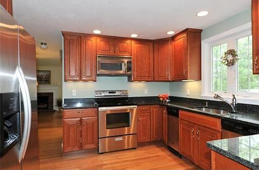 Great House! Great Location! Great Schools! Surprisingly spacious Garrison Colonial with 4 Bedrooms features attached garage, hardwood floors throughout, brand new Kitchen w/granite & stainless appliances. Updated baths. Family Rm with fireplace and sliders out to deck. Front to back fireplaced Living Rm. Formal Dining Room. Tranquil yard with lots of outdoor living space. Freshly painted interior, newer windows, roof, and gleaming hardwood floors. Bonus Workshop/Storage Rm, walkout basement.