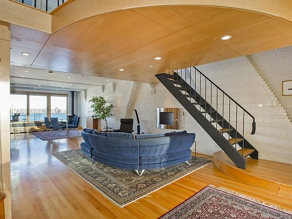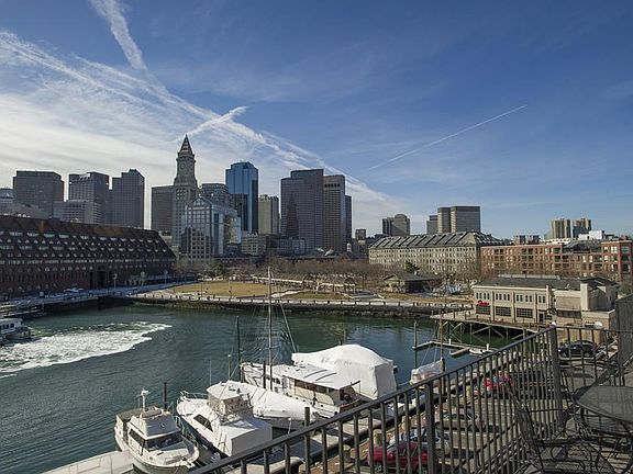 Custom-built Penthouse with breathtaking views of Bostons Skyline and Harbor from every room. Loft-like with original timber beams and exposed brick, open floor plan with ceiling to floor windows and doors that open to private decks at each end. Open chef's kitchen with stainless steel appliances, Sub-zero, granite countertops & walk-in pantry. Sunny living room with Maple hardwoods and gas Fireplace. Custom staircase leads to office/nursery and Master suite with gas Fireplace, and en-suite Jacuzzi bath and large walk-in closet. Spacious extra storage in basement. On-site management, parking, guest parking and marina slips available. Located in the Heart of the Waterfront next to Christopher Columbus Park steps from Downtown Boston, North End, Faneuil Hall and all major transportation points.