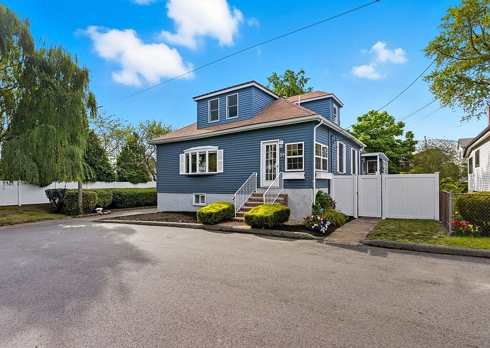Welcome to 59 Crescent St in Winthrop. This well-kept bungalow offers 1,716 square feet of living space with 3 bedrooms and 2.5 bathrooms. The first floor includes a large living room with skylights, bay windows, hardwood floors, and recessed lighting, a dining area, and an updated kitchen with granite counters, stainless steel appliances, and a gas stove. Upstairs, you will find comfortable bedrooms with hardwood floors and a modern full bath. Outdoor space features a brand new deck, fenced yard, enclosed porch, and off-street parking. The home sits on a 6,125 square foot lot at the end of a quiet, dead-end street with few neighboring homes, providing added privacy. Just a short distance to the beach, public transportation, parks, golf, the marina, and local shops and dining, this property offers both charm and convenience.