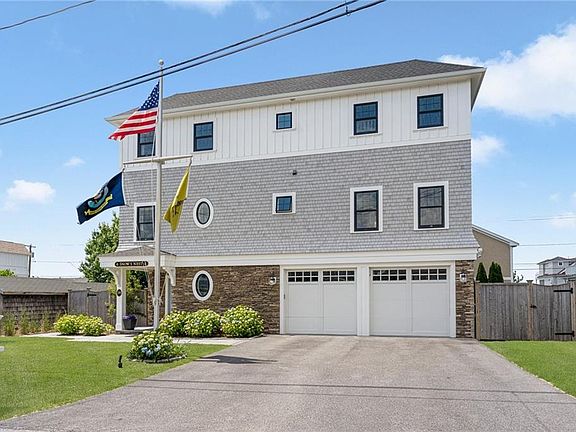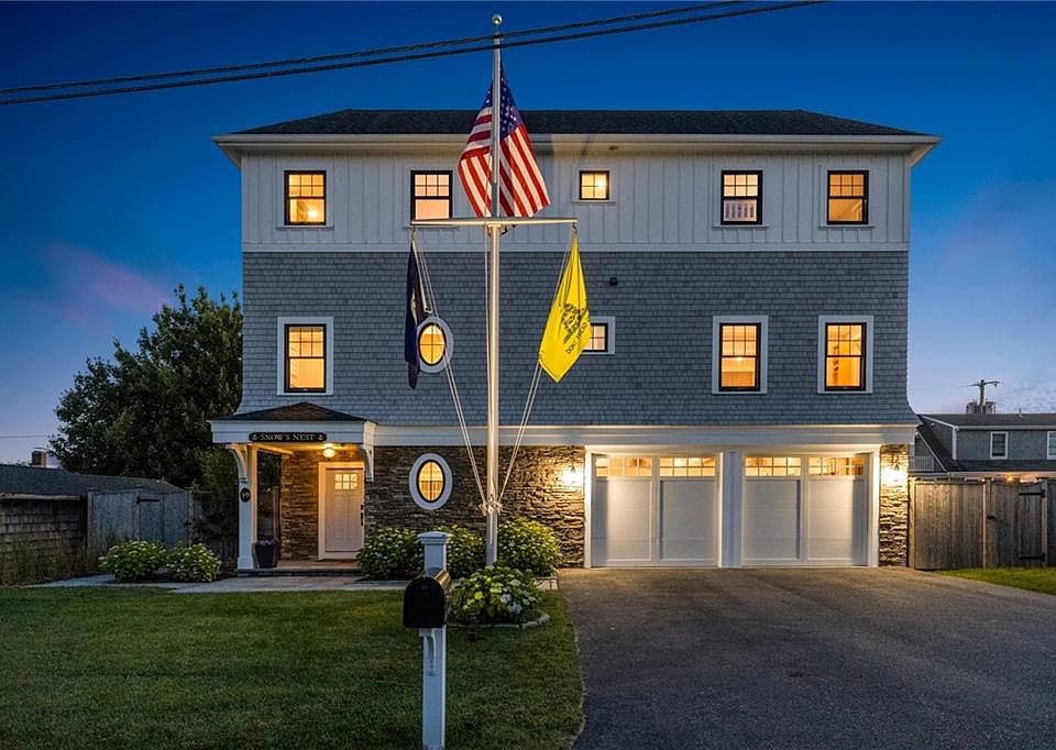 Welcome to "Snow’s Nest" on Easton’s Point, a stunning custom home offering 4500 sq. ft. of luxurious living space. With flawless finishes and exquisite millwork, this Smart home exudes coastal chic with a modern New England vibe. This four-level home features a well-designed floor plan, ensuring privacy and making it perfect for family retreats. The "Control 4" smart system integrates voice-controlled shades, curtains, lighting, music, and temperature, with "heat-mapped" Wi-Fi on every level. Enter on the second level, which includes a mudroom, half bath, and game room with French doors to the backyard. The third level hosts a Chef’s Kitchen with professional-grade appliances, quartz counters, a wood butcher block island, and custom cabinetry with views of Easton’s Beach and Cliff Walk. Dual sliding glass doors open to the second-floor deck with ocean views. The fourth level boasts expansive windows with views of Easton Bay and First Beach. The lower level features a ten-seat theatre room with Dolby surround sound, HD projector, and 12-foot screen. A home gym includes a Peloton bike, Elliptical Trainer, and weights. The backyard is a fenced sanctuary with an 8-seat hot tub, outdoor shower, Big Green Egg Barbeque, firepit, and travertine terrace, steps from the First Beach Access Path. Enjoy your own fruit trees and vegetable gardens throughout the grounds. The two-car garage offers a Tonal Home Gym and Tesla Charging Station.