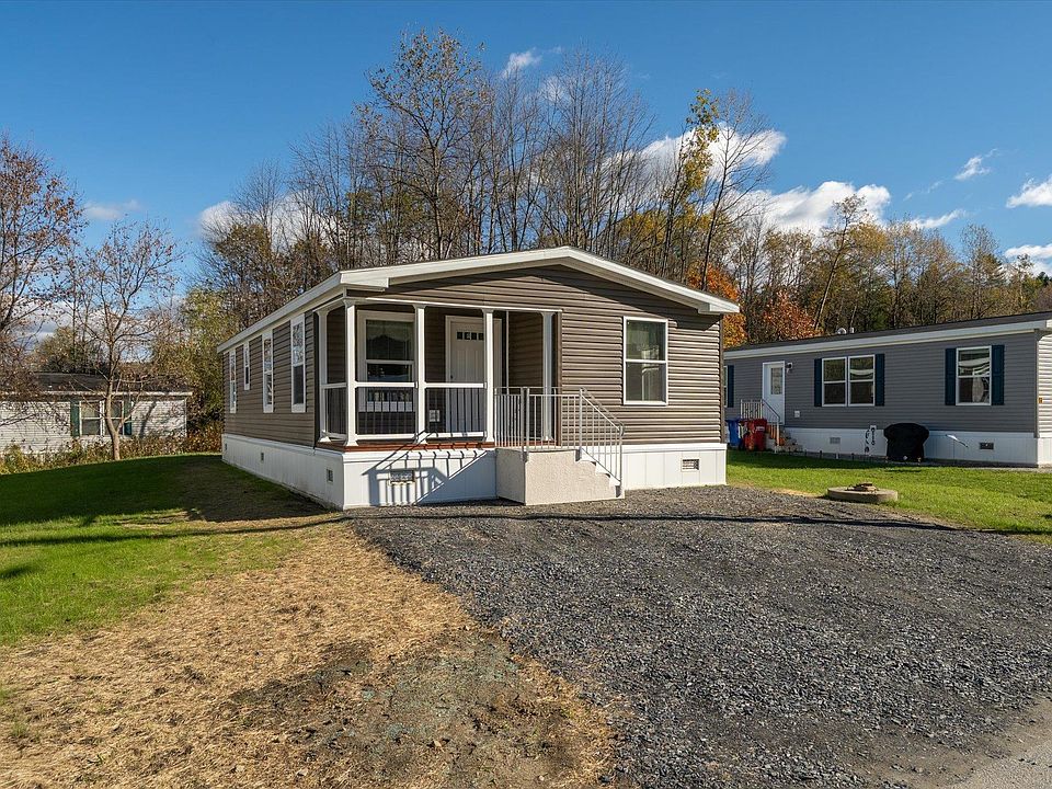 LIKE NEW 2023 Energy Star Rated Home located in a small private community in beautiful Berlin, VT. This spacious 2 bed, 1 bath 929 Sq. Ft. home features a compfy Covered Front Porch and an Open Living Room/Kitchen/Dining Area. Other highlights include a Kitchen Island with Stool Seating and Built-In Stainless Farm Sink, large Master Bedroom, functional Bathroom with Walk-In Shower, Stacked Washer & Dryer, Built-In Microwave. The home is equipped with a Propane Furnace. Discounted fuel pricing is available through the community owner. Offer acceptance is subject to park and financing approval. Lot rent is $577 per month. Community owner pays trash, recycling, water and sewer. Tenant pays rent, property taxes (on home & structures only), propane (discounted pricing), electric, cable and phone. Whether you’re a retiree, a work from homer, an I-89 commuter or anything in between, this is the ideal home base. CVMC Hospital and UVMHN Specialty Offices, Urgent/Express Care Centers, Pharmacies, Grocery Stores, Box Stores, Automotive Services/Supplies, Restaurants and more – all right at your fingertips. Berlin Elementary School, U-32 Middle/High School, and State Capitol/Offices just a short round trip. Waterbury, Stowe, Waitsfield, Burlington and West Lebanon are within a 20-45 minute drive on I-89.