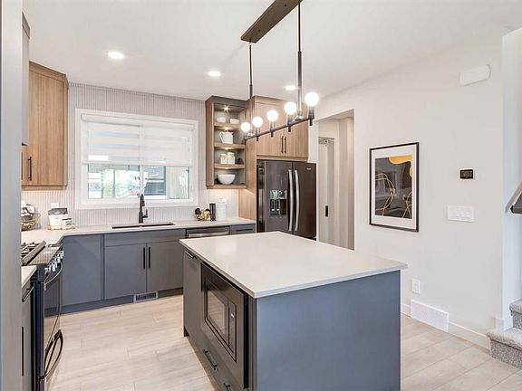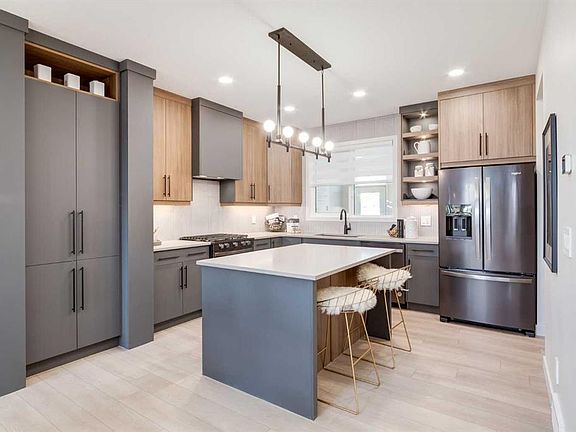 THIS HOME SPENT ITS FIRST YEARS IN THE SPOTLIGHT AS A HOMES BY AVI SHOWHOME. NOW IT’S READY TO TRADE DISPLAY LIFE FOR REAL LIFE WITH ITS FIRST OWNER. The living room itself rises TWO STOREYS HIGH, anchored by a bold painted feature wall with an ELECTRIC FIREPLACE and clean mantle ledge. Windows stack one above another, pulling daylight into every corner. GLASS RAILING from the bonus room above keeps the sightlines open, so even upstairs you feel part of the action. In the kitchen, the details go beyond builder-basic: QUARTZ COUNTERS, a Silgranit undermount sink, GAS RANGE under a CUSTOM HOOD, and a backsplash that climbs full-height around the window. The dining area includes a BUILT-IN CONSOLE that doubles as a hosting tool — the perfect place to serve, set out, or even pull up a stool for extra seating. From here, meals move easily onto the 20’ REAR DECK where the gas line is ready to go. A POCKET OFFICE near the front door gives work and study their own spot, while MUDROOM CABINETRY shoulders the chaos of backpacks, boots, and grocery bags. Upstairs, the bonus room overlooks the living room below. Just outside the laundry room, a wall of FLOATING SHELVES AND BUILT-INS keeps household essentials organized and close at hand. The laundry itself stays simple and contained, while the master offers its own retreat with a walk-in closet and ensuite. The THIRD FLOOR adds two more bedrooms and a bath with a double vanity, plus the rear bedroom includes a WEST-FACING BALCONY — one more way this home builds outdoor living into daily life. And here’s where the “former showhome” part really matters: the extras are already finished. DESIGNER WINDOW COVERINGS are up, UPGRADED LIGHTING is installed, AIR CONDITIONING is running, SPRINKLERS are in the yard, and the landscaping is done. Out back, a full-sized 20’X20’ DETACHED GARAGE is ready, and the curb appeal is set with a wide front porch. No waiting for sod, no living with temporary blinds, no upgrading light fixtures on weekends. This is Rangeview by Section 23, Calgary’s first garden-to-table community. Streets are shaped by orchards, gardens, and gathering spaces, so connection feels built-in from the start. Most new builds begin with a to-do list. This one begins with a head start. Come see how it feels to MOVE INTO A SHOWHOME that’s finally ready to be lived in.