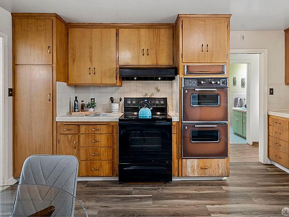 Private backyardCozy ambianceSkylight windowsLaminated flooringTile countertopsBrown cabinetryLaminate tile flooring