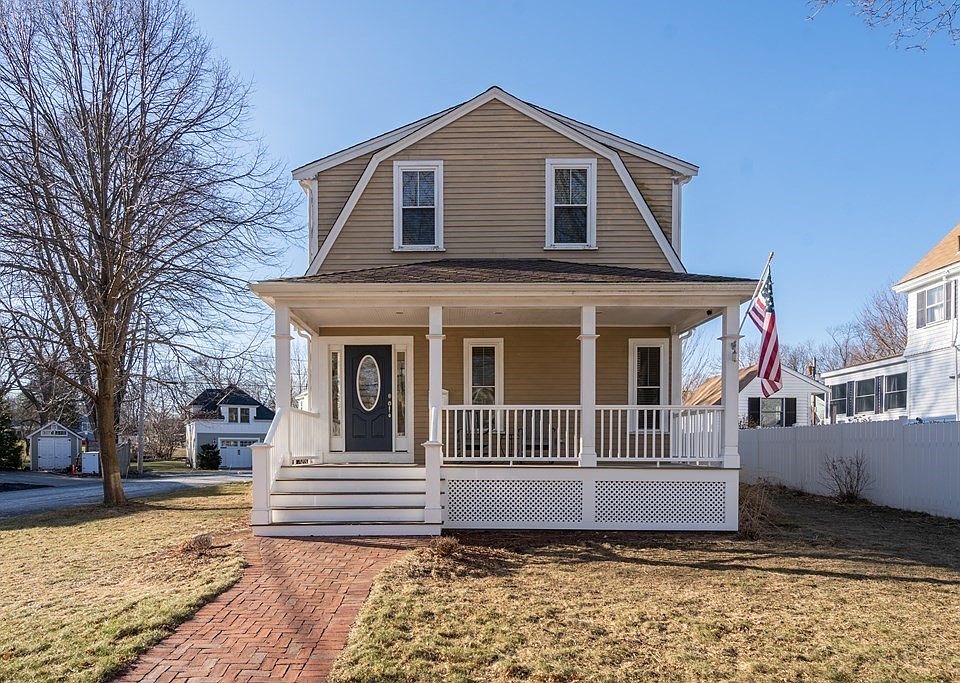 LOCATION AND LIFESTYLE! You are home! An IDEAL location for enjoying Hingham's traditions, restaurants, shops and Harbor, all just a stone's throw away from this corner lot on COVETED ELM STREET! An inviting Farmer's porch greets you as you step inside this CHARMING Gambrel Farmhouse. LIGHT pours into the open floor plan with oversized windows, high ceilings, and gleaming hardwood floors. Granite and stainless steel kitchen with generous cabinetry and island accesses the backyard with patio for added entertainment space. Adjacent to dining area, the stylish living room is able to comfortably host family and friends. Upstairs is home to a spacious primary suite with bath and walk-in closet; laundry, two guest rooms and family bath. Complementing the property is a partially finished lower level offering storage, and an outdoor shed for storing extra gear. Short drive to Commuter Rail and Shipyard for Commuter Boat. One year Home Warranty included. OUTSTANDING OPPORTUNITY!
