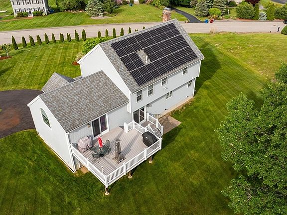 Beautiful 4BR Colonial sitting majestically on the knoll with a full length 36 foot Farmer's Porch along the front of the home. Great floor plan with a cozy feel from the moment you enter. Improvements and upgrades by the current owner are numerous. Solar panels (4 years old with battery backup) are OWNED, and you'll benefit with 0 electric bill and even money back from the electric company for excess generated electricity. Smart Nest thermostat, new asphalt driveway replaced only 1 year ago, both bathrooms completely remodeled 5 years ago, gleaming HW floors throughout refinished 6 years ago, landscaping and sprinkler system have been upgraded. 10x12 garden shed, tankless HW, high efficiency electric heat pump with gas backup is 2 years old. That's right! No electric bill and no heat pump electric energy charges thanks to your solar panels!! All window treatments stay. Seller has active video and audio devices in the form of Alexa and Ring doorbells.