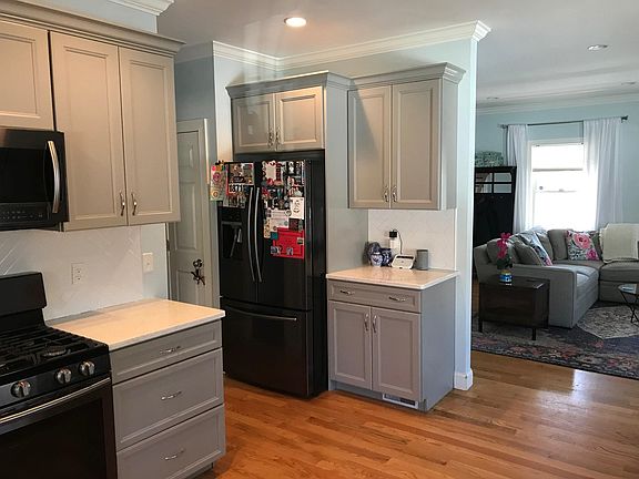 Beautiful, bright 3 bed 2 bath townhouse at the end of a quiet, dead end street. Quick 0.3 mile walk to the Canton Center Commuter Rail Station makes this spacious townhouse perfect for commuters. Hardwood floors throughout, open-concept living. Efficient, Nest-controlled heating and A/C. Remote controlled gas fireplace. Double closets in master bedroom and large, double door closets in other 2 bedrooms. Dual sinks and marble walk-in shower in upstairs bath, full tub downstairs. Second floor laundry. Farmers porch, back deck, and large, fenced backyard. Off-street parking for 2 cars. Unfinished basement for storage. Built in 2017. Neighbors are wonderful. Tenant responsible for utilities