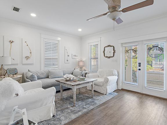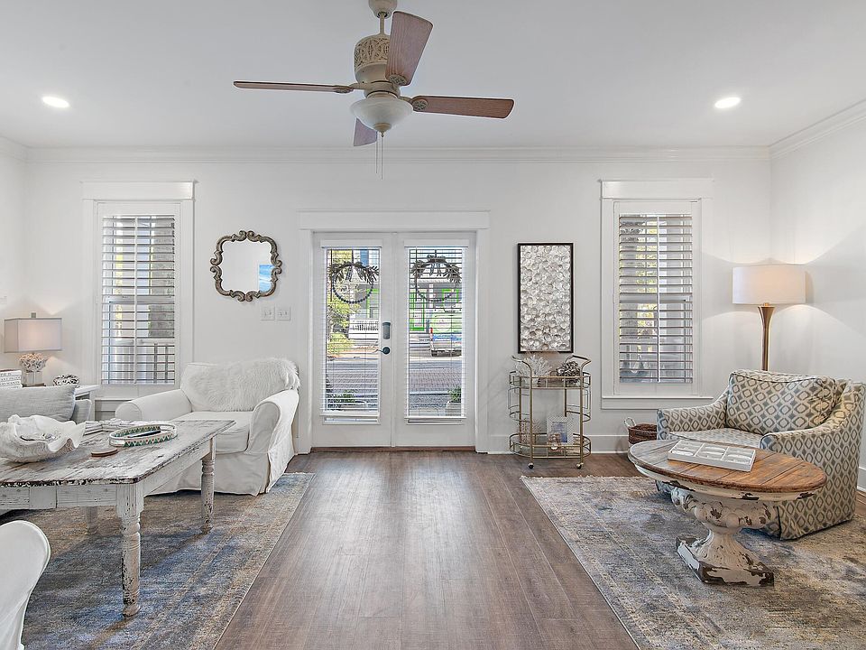 Welcome to your beautifully reimagined coastal retreat in the heart of Seacrest Beach, ideally located between Rosemary Beach and Alys Beach along the iconic 30A corridor. This fully renovated home blends modern luxury with timeless coastal charm, offering an inviting open-concept design perfect for both entertaining and everyday living. The brand-new kitchen showcases quartz countertops, a striking white-and-gold hexagon backsplash, and elegant gold-tone accents on the farmhouse sink and hardware. Freshly painted inside and out, the home features all-new flooring, updated bathrooms, and carefully curated designer details throughout. The main level includes a spacious guest suite, providing the ease of single-level living. Upstairs, the serene primary suit offers a king bed, a cozy sitting area, and a spa-inspired en suite with a soaking tub, walk-in shower, double quartz vanities, and a makeup station. An additional guest bedroom and a fun bunk room share a refreshed Jack-and-Jill bath, while the expansive 24-foot balcony creates a tranquil outdoor retreat. The exterior is equally impressive, with covered porches on both levels, a rare covered carport, and a private rear terrace ideal for grilling, bike storage, or relaxing on a shaded swing. Residents of Seacrest Beach enjoy premier amenities including a 12,000-square-foot resort-style pool, scenic walking trails, community parks, and a tram to a private stretch of sugar-white sand. Offered fully furnished and move-in ready, this property is perfect as a primary residence, vacation getaway, or income-producing rental. Don't miss the opportunity to own this stunning coastal haven in one of 30A's most coveted communities.