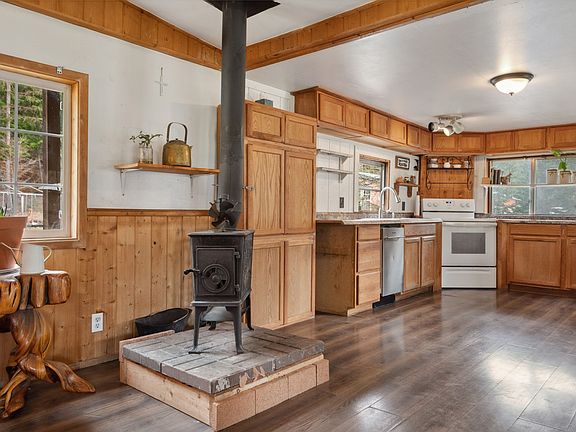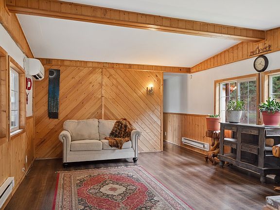This peaceful property offers a hiking trail winding through the lush land, surrounded by towering trees, including two majestic willows. It’s a true outdoor haven, featuring a fenced yard, a spacious barn, and ample room for farm animals. For visitors, a charming guest cabin with a cozy wood stove provides a perfect getaway. Cultivate your green thumb! Harvest fresh raspberries, strawberries, and fruit from a mix of mature and young trees, or grow vibrant perennials and vegetables in the established garden. A whimsical treehouse adds a touch of magic. Don't miss this rare blend of mountain seclusion and convenience!