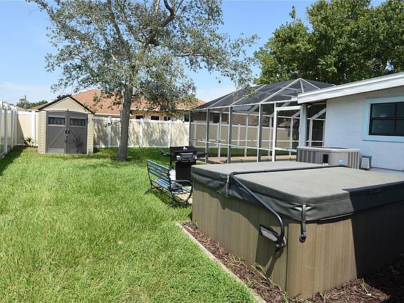 Short Term Rental! STUNNING SALTWATER HEATED POOL HOME WITH FENCED YARD! 2 bed +Den/3 bath-Located in desirable located Palm Harbor subdivision. Experience the coastal feeling when you walk in this home. Cozy living room. Dining area overlooking the lanai. Spacious lanai with adjoining bathroom that features all tile walk-in shower and storage closet. Kitchen with granite tops has plenty of cabinetry and counter space. Large primary bedroom that has walk-in closet. All bedrooms are nicely sized. Large screened in pool area. Always Hot and ready Hot Tub. The perfect area to entertain friends and family. Nearby features include: kayaking, boating, shopping, dining and just minutes to the beach! The price is off season and not available for May - August.