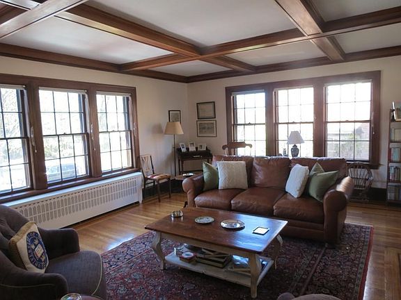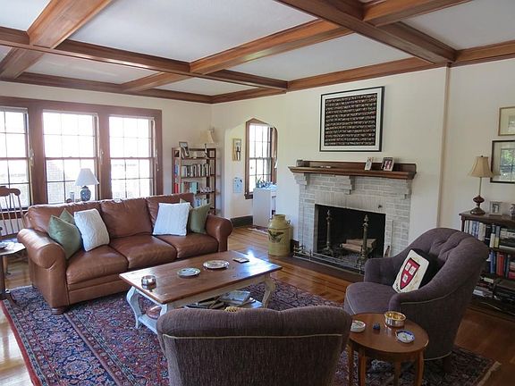 A rare find is this stunning home located in the coveted Ward elementary district. A home filled with charm, character and drench in natural light. There is an elegant living room with fireplace, gumwood beamed ceilings and separate library/office, formal dining room that opens onto an airy screened sun porch; a modern eat-in kitchen with center island and recessed lighting; a wonderful rear deck and yard, half bath, and another study/den on the first floor. The 2nd floor has three large bedrooms, a smaller guest room, and two full bathrooms. The home has been pristinely maintained. Additional features include an inviting foyer, central air, side-by-side washer dryer, hardwood floors and a direct entrance two car garage. Property is convenient to Newton Centre, Chestnut Hill shopping and restaurants and much more. A fabulous opportunity in an amazing location.
