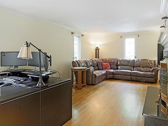 Enter this sprawling contemporary home through a grand foyer boasting inlay tile flooring surrounded by hardwood flooring. To the left, through the french doors, is the combination dining & living room with hardwood flooring & crown molding. The adjacent cabinet-packed kitchen features a large eating area, granite counters, stunning backsplash, newer appliances, recessed lighting, pellet stove & hardwood flooring. The kitchen opens into a bonus room with access to the backyard. Just off the bonus room is a large study/library with custom built-in cabinets, open into a large family room with a wood stove, & stairs leading to the upper level. The lower level includes first-floor laundry, mudroom & half bath. The upper level boasts a grand main bedroom w/walkin closet & an updated main bath. 2nd large bedroom with walk-in closet and 2 other bedrooms and a full bath with double vanity. The exterior of the home features a long deck and an above-ground pool with its own large deck.