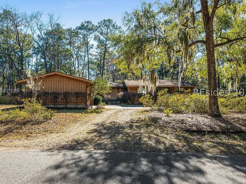 Welcome to a Gardeners Paradise! Bring your tools & set up shop in the attached workroom - so many possibilities at this distinctive mid-century modern home in desirable Royal Pines. Set on nearly an acre of gardens and lightly wooded areas, the property features one level living and offers a serene setting with views overlooking the golf course. As you walk up the broad brick walk, rebuilt stairs and lush plantings, and through the double front door, an intricately-carved teak screen and brick floor greats you. Beyond is the spectacular great room, featuring a soaring wood beamed ceiling, heart of pine floors, and a brick feature wall with a wood burning fireplace. Two sliders connect to the cozy, sunny Carolina room, which has views of the expansive back yard, ringed by stunning azalea bushes. The large, bright kitchen with breakfast area offers slide-out drawers for pots and other cooking essentials, newer stainless appliances, and ample counter space and storage. The adjacent laundry area houses a new water heater for the kitchen and laundry. A separate water heater serves the bathrooms...there is always plenty of hot water! The formal dining room also features heart of pine floors and a lighted, mirrored built in cabinet. These areas are perfect for entertaining and family gatherings.The spacious primary bedroom is a luxurious retreat that offers expansive views, a large walk-in closet, and a renovated ensuite bath. Two generously sized bedrooms, and a large hall bathroom with soaker tub, complete the private wing. A workroom, with built in cabinets and a second full-size refrigerator, and the two car garage add functionality and convenience. A fenced yard also has a Dog Guard electric fence installed. With lots of storage, a peaceful setting, and a prime location surrounded by beautiful gardens, this home is ready to welcome its next owner. If you're looking for style, comfort, and a home that checks all the boxes, this Royal Pines gem could be the one for you! * Wired for ADT * Wired for Internet * Satelite TV * New HVAC* Wired for generator - Roof professionally estimated at approx 15 yrs.