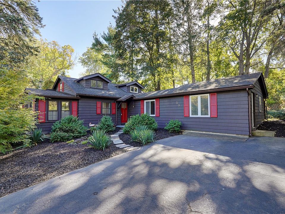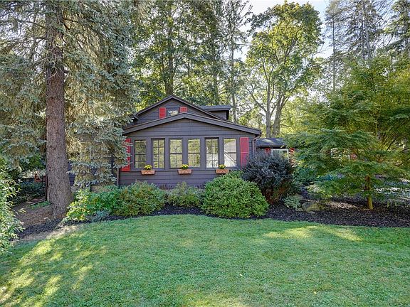 Discover this one-of-a-kind home offering historic charm and modern convenience in a central Pittsford School District location. Nestled in a secluded, park-like setting with a wooded lot, this property provides both privacy and proximity just a short walk to Corbett’s Glen Park and minutes from expressway exits, local shopping, and dining. Step inside to find bright, inviting spaces filled with natural light from numerous windows. The home showcases beautiful original hardwood floors, exposed beams, and vaulted ceilings that highlight its timeless character. A cozy wood-burning fireplace adds warmth and ambiance to the living area, while a private patio offers a peaceful outdoor retreat surrounded by nature.