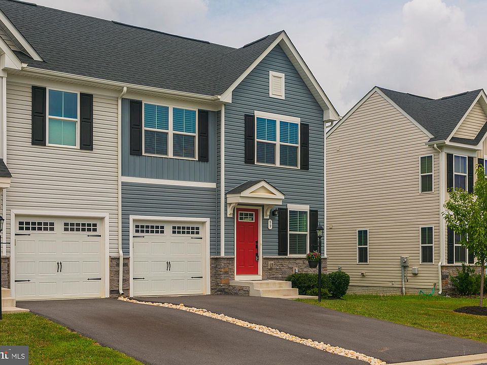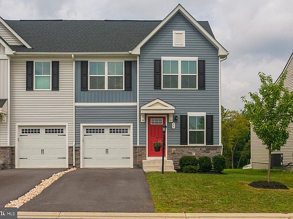 Bright and airy, this beautifully maintained townhome villa offers comfort, style, and functionality in every corner. The main level features luxury vinyl plank flooring throughout, a cozy living room with a warm electric fireplace, and a stunning gourmet kitchen complete with a large island with breakfast bar, granite countertops, and sleek stainless steel appliances. The main level also boasts a private primary suite with a tiled shower, double vanity, and generous walk-in closet. Upstairs, you'll find two additional bedrooms, each with their own walk-in closet, providing ample sleeping space or room for a home office. A full unfinished basement with bath rough-in offers exceptional storage or potential for future expansion. Off the kitchen, step outside to a covered rear deck that overlooks peaceful community greenspace and mature trees - perfect for relaxing or entertaining. This home combines modern finishes with a serene setting, making it a truly exceptional place to call home.