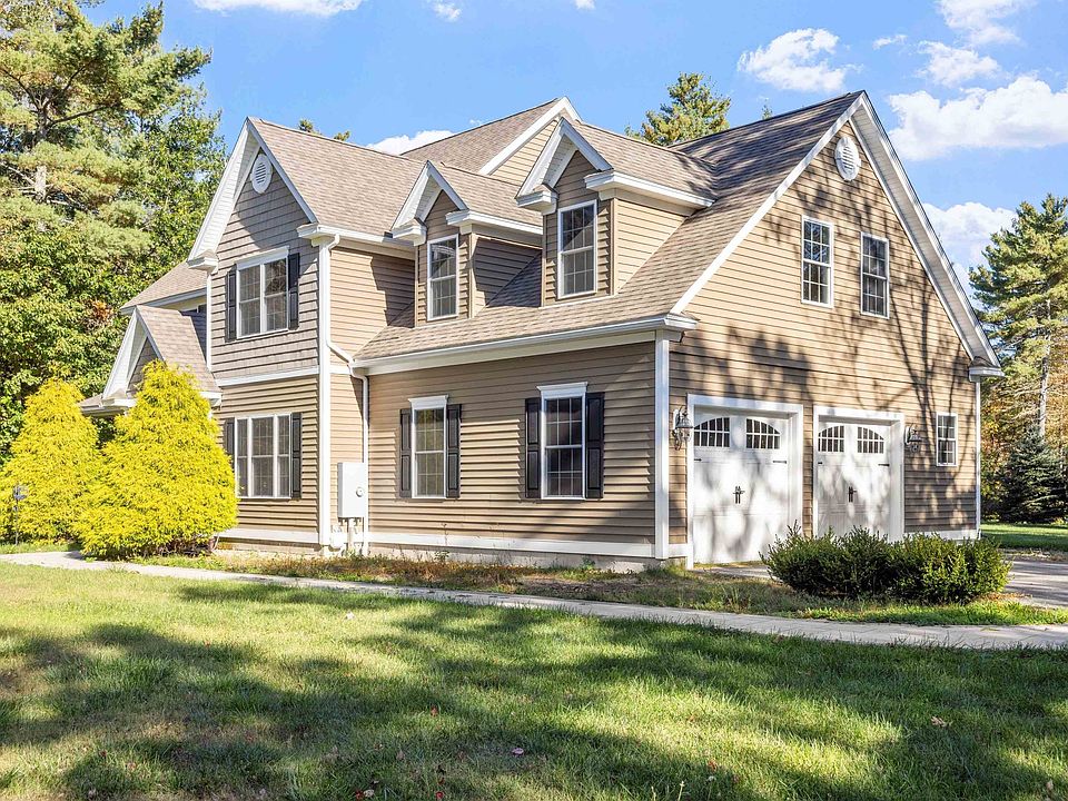 Auburn NH- Beautiful 4-bedroom, 2.5-bath Colonial located in an upscale cul-de-sac neighborhood, close to Interstate 93. Enter from the attached two-car garage into a welcoming kitchen featuring granite counters with an eat at counter, perfect for spending time together while preparing meals. A convenient coffee/beverage area connects the kitchen to the formal dining room. The family room offers a gas fireplace and oversized windows overlooking the peaceful backyard. French doors open to a formal living room or office space. The primary bedroom features cathedral ceilings and an oversized closet, with a luxurious bath that includes a soaking tub and tiled shower. Three additional bedrooms share a full bath on the second floor. The home includes a geothermal heating and cooling system for year-round efficiency. The basement offers high ceilings with potential for future expansion. Enjoy a level backyard with a paved patio and firepit. First-floor laundry is located off the kitchen. Close to Lake Massabesic and the Auburn Audubon Center.
