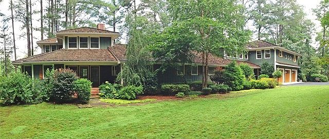 Private nature retreat on fully stocked 4.74 acre lake. Opulent interior in the style of the grand European hunting lodges.