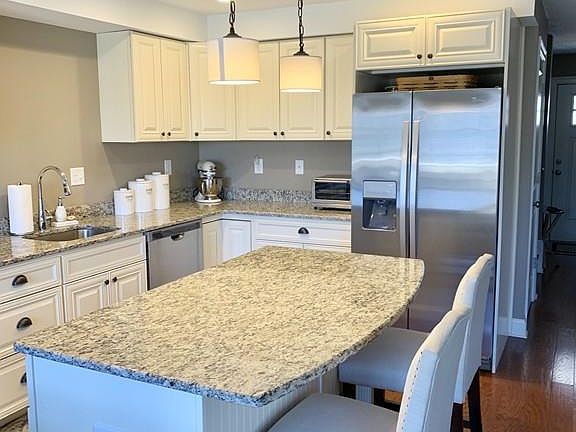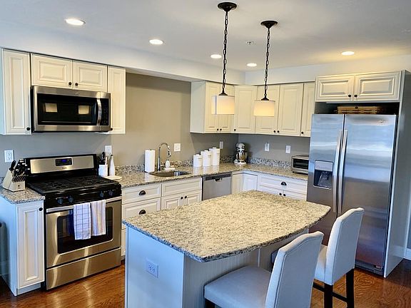 This is a rare chance at a beautiful townhouse in a 3-year young development. Oversized kitchen contains stainless Whirlpool appliances, gas range and a center-island with gorgeous granite countertops. Large eating area overlooks private deck for grilling and entertaining. Beautiful living room area with gas fireplace and wall of windows allows for a perfect relaxation spot. Half bath completes the first level. The 2nd level boasts a spacious master suite with walk in closet + additional closet, and a master bath with double granite vanity plus shower. Ample sized guest room with closet, plus separate bath with tub + shower. Laundry conveniently located in upstairs hallway. Plenty of parking with one car garage, extended driveway and additional designated guest parking areas. Low monthly fee, pets allowed, plus close to shopping, entertainment and Routes 495/290/I-90 for easy commuting.