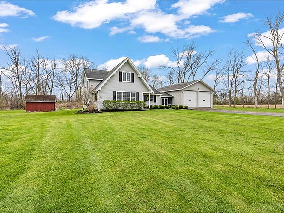 Welcome to this beautifully updated 4-bedroom, 2-bathroom home in the desirable Hilton School District, offering the perfect blend of modern design, everyday comfort, and peaceful outdoor living. Set on a sprawling 1.2-acre lot, the home features a deck and patio overlooking a private, park-like yard—a true retreat ideal for relaxing, entertaining, or simply enjoying the sounds of nature. Inside, the home feels fresh and stylish with thoughtful updates throughout, including gleaming hardwood floors, a fully updated kitchen, and brand-new carpet. You'll love the flexibility of multiple spacious living areas, including a sophisticated living room, a cozy family room, a sunlit dining area, and a finished basement—ideal for a playroom, office, or media space. The generous primary bedroom offers comfort and privacy, while the additional bedrooms are bright, well-sized, and ready to fit your lifestyle. A standout feature is the impressive 4+ car garage/barn with electricity and abundant storage—perfect for hobbyists, car enthusiasts, or anyone in need of serious workspace. A separate storage shed adds even more convenience. If you're searching for a move-in-ready home with modern finishes, room to grow, and a serene setting that feels like home the moment you arrive, this property checks every box. Call your agent now to schedule a private showing! For buyer's convenience negotiations are delayed until Tuesday May 13th at Noon.