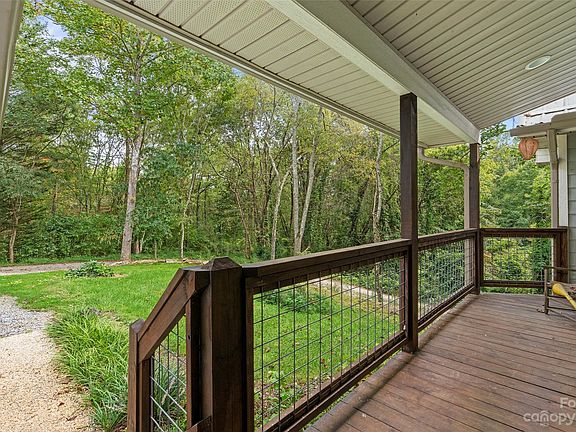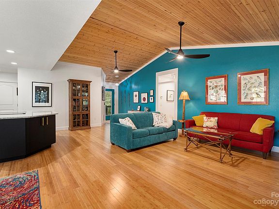 Meticulously maintained and like new 3BD/2BA (2BD Septic Tank) home in a great central location and all on one level. Being wonderfully landscaped this property offers so much outdoor space with a fire pit, yard space for kids or dogs, T&G covered back porch and rocking chair front porch! Boasting open floor plan with bamboo floors and variety of tile, vaulted T&G ceiling great room, gas log fireplace with tile surround, gorgeous hexagon island with quartz countertops, induction cook top, soft close beautiful cabinetry, butlers pantry with sink and mini refrigerator, guest bedroom/office, delightful guest bathroom with subway tile bath surround, primary bathroom with walk-in closet, double vanity, custom tile shower, and heated bathroom mirror! 2-Car Garage, ample parking, Minutes to I-40, Waynesville, Golf, Shopping, and restaurants complete this must see!