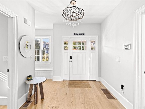 Fabulous WATER VIEWS in this 6 year young contemporary Farmhouse in sought after CROW POINT. The OPEN floor plan everyone wants...where the Kitchen, Dining and Living room flow seamlessly. There are also custom architectural details inc. 9' ceilings, oversized windows and beautiful coffered ceilings. Classic white kitchen w/farmers sink, island, quartz countertops, Wolf stove and Thermador refrigerator. Nice sized office is tucked away in the front of the house and the mudroom with cubbies provides a great drop zone upon entry. The second floor offers 3 Bedrooms and 2 full baths inc. a gorgeous primary suite w/stunning views, a large walk in closet and luxurious bath. VERSATILE space on the 3rd floor w/a full bath and a balcony/deck to enjoy the BEST VIEWS in the house! The lower level is also finished, w/custom built-ins, walk in closet and another WFH space. Fabulous deck overlooking the level, fenced in back yard. Town sewer and Gas. ACCESS to the WATER via Kimball Beach Dock Assn!