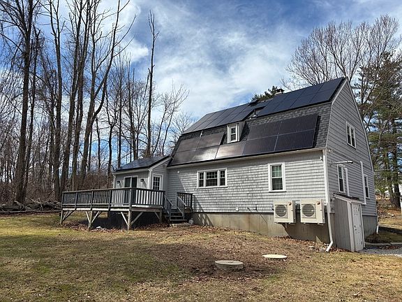 Welcome home to this spacious gambrel home in a desirable neighborhood. The living room features wide plank flooring and exposed beams. This home has 3 generous sized bedrooms and 2 full bathrooms. 4 mini splits to keep you cool through the summer or warm through the winter. There is also a pellet stove. Solar panels and electric dog fence already installed. The walk out basement is waiting for you to refinish. The large yard is flat and quiet. There is a good size deck off the bonus room for you to enjoy.