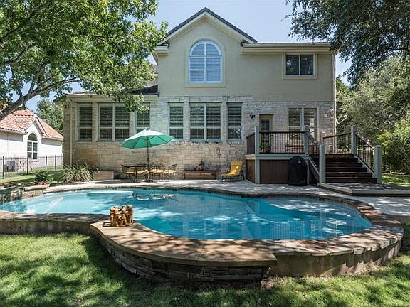 This beautifully updated home within a gated golf course community is situated on a lot with amazing oak trees. Large fenced backyard with awesome pool. Fine quality Ipe wooden deck. Master and office lower level. 4 Bedrooms upstairs and large game room. Fresh paint throughout and new carpet in master. Mandatory social membership of $121/mo. Private Hills park. Close to Hill Country Galleria shopping and restaurants. Lake Travis ISD.