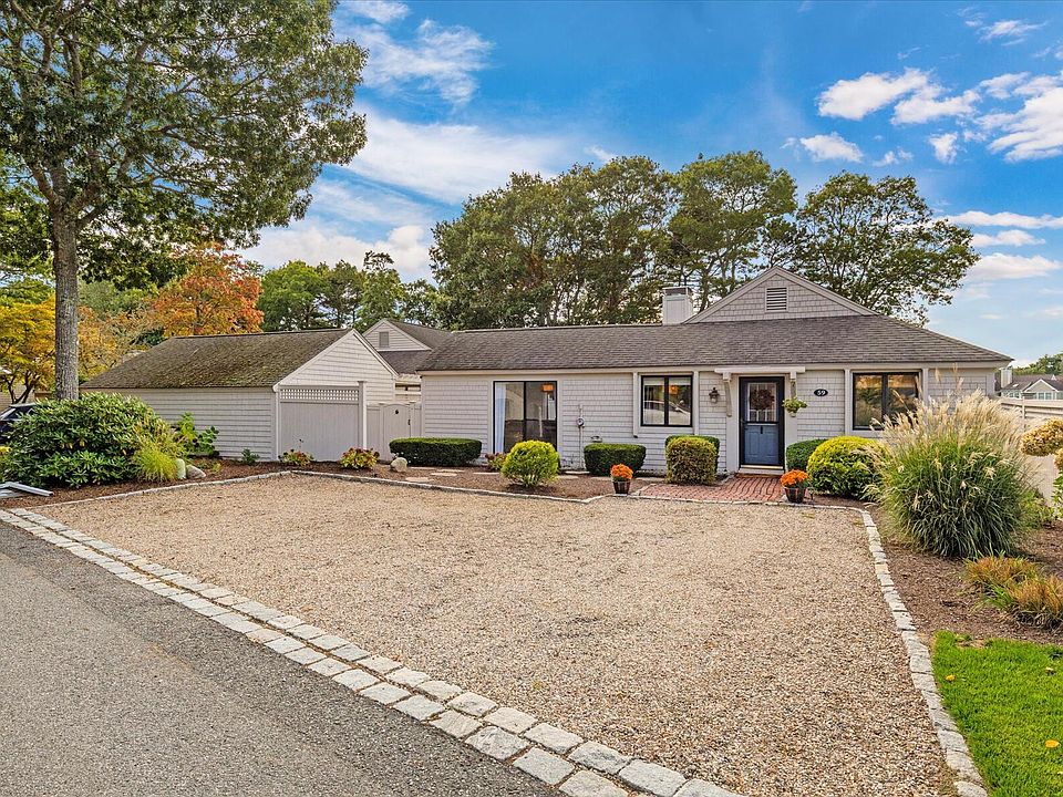Stunning Updated Pool Villa | The Mews at New SeaburyLocated on the 4th fairway of the Dunes Golf Course, this highly desirable TURNKEY & FURNISHED, 2BR + bonus room, 2BA villa in The Mews Village has been extensively updated and is move-in ready. The open living space features cathedral ceilings, gas fireplace, new hardwood flooring throughout (tile in bathrooms), and custom millwork. A renovated galley kitchen with granite counters and stainless appliances opens to the dining area and flows into the private backyard--complete with freshly painted in-ground pool, outdoor shower and new sliders.The spacious primary suite includes a beautifully updated bath with glass-enclosed tiled shower and private access to the patio. Second bedroom and full guest bath also recently renovated. Bonus room with Murphy bed offers flexibility as an office, den, or guest space.Recent updates include both bathrooms, kitchen counters, hardwood floors (throughout main living areas and bedrooms), pool heater, and sliders.Conveniently located near South Cape Beach, Popponesset Marketplace, and Mashpee Commons.*All furnishings included expect couch & patio set*