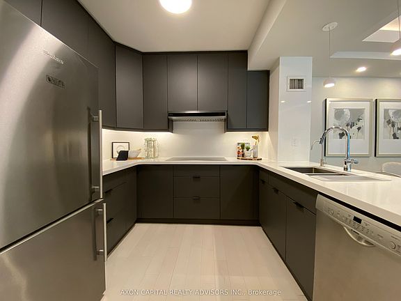 Don't miss this beautifully renovated Yorkville luxury 3-bedroom, 2.5-bathroom townhouse with parking for less than $872 per sqft, excluding finished basement. This over 2000 sqft townhouse is one of only 5 in the complex and offers incredible value with condo fees including all utilities and finished basement. Step into a custom, modern gourmet kitchen featuring elegant quartz countertops and top-of-the-line stainless steel appliances, including a built-in double wall oven. The main floor features stunning engineered hardwood floors, coffered ceilings, Hunter Douglas blinds and recessed LED lighting in the living and dining rooms, creating an inviting and sophisticated atmosphere. Retreat to the expansive top-floor master suite, complete with a sitting area/den and a lavish 5-piece ensuite. Indulge in the freestanding tub, Toto bidet, and enjoy the extra large walk-in closet with custom organizers. Entertain and unwind on the private enclosed patio/terrace, providing ample space for a BBQ and outdoor lounge furniture. The basement level has 9 Ft high ceilings with direct access to the underground garage and adjacent parking spot. Underground garage conveniently leads to building amenities. Building amenities include a fully-equipped gym, sauna, boardroom, party room, and ample visitor parking. Gym, change rooms & sauna are about to undergo a major $350k budgeted renovation scheduled for completion in Fall of 2025.