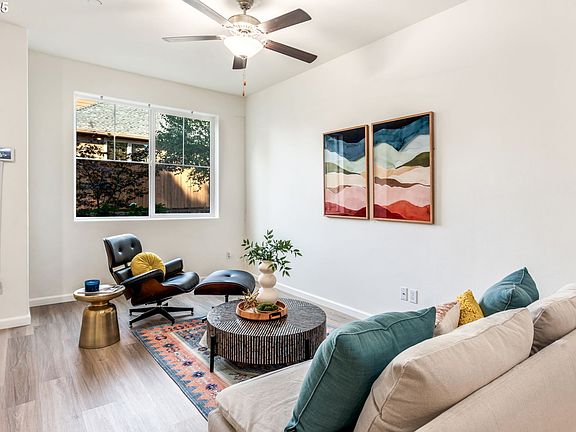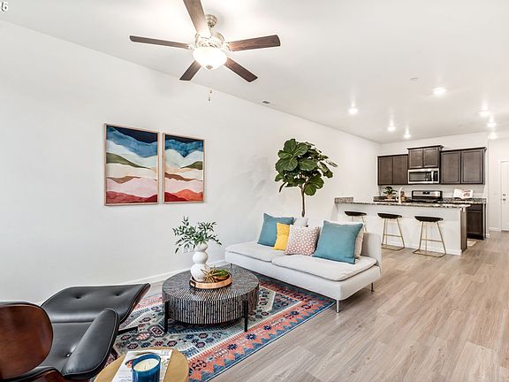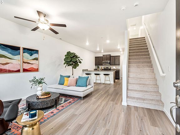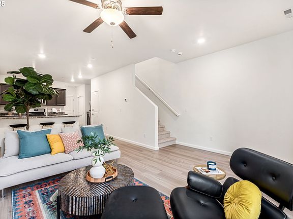 Freshly updated and ready for its new owner! This 2021 home just got a full interior refresh — new paint on every wall, ceiling, trim, and doors, plus brand-new carpet throughout the upstairs and bedrooms. No projects here, just move right in!The main floor features high ceilings and durable luxury vinyl plank flooring, giving the open living space a modern, bright feel. The kitchen includes granite countertops, stainless steel appliances, a breakfast bar, and a walk-in pantry—perfect for everyday living and entertaining.Upstairs, enjoy spacious bedrooms plus a flex loft space—great for a home office, media nook, or play area. The large one-car garage and driveway add extra parking and storage options. Grass front yard with room to add planters and pots. Accessible to public transportation and main floor has only one step through front and garage door. With rentals allowed, this home also offers long-term flexibility.This is one of the best values in the area—modern build, fresh updates, and nothing to do but move in!