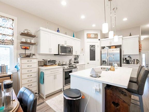 Welcome to Park Crossings, where comfort, style, and convenience meet in this immaculate end-unit bungalow condo built in 2016. Step inside to a bright, open main floor featuring a modern kitchen with quartz countertops, stainless steel appliances, corner pantry, and a spacious island - perfect for entertaining. The dining and living areas flow seamlessly together, centered around a modern gas fireplace for cozy evenings in. The primary suite offers a walk-in closet, a beautiful ensuite with a soaker tub and separate shower, plus the convenience of main-floor laundry. Throughout the home, you’ll find custom blackout blinds, adding a polished touch of style and privacy to every room. In the basement it's perfect for movie nights, gaming, or uninterrupted rest. Outside, your private corner deck oasis is a true retreat, with extra space, lush privacy foliage, and a Traeger® smoker and flat-top grill ready for summer gatherings. Downstairs, the professionally finished basement (2019) impresses with luxury vinyl plank flooring, a stylish wet bar, and a spacious layout ideal for entertaining or relaxing. You’ll also find a large bedroom with a walk-in closet, a full bath, a functional workspace, and potential for a third bedroom. Ample storage completes this thoughtfully designed home. Recent updates include most lights and switches replaced, a new washer, air conditioning and furnace professionally serviced and cleaned, and all ductwork and vents professionally cleaned in June. Impeccably maintained and move-in ready, this stunning corner unit offers modern living with extra privacy and charm in one of the city’s most desirable communities.