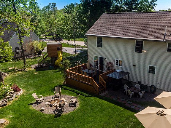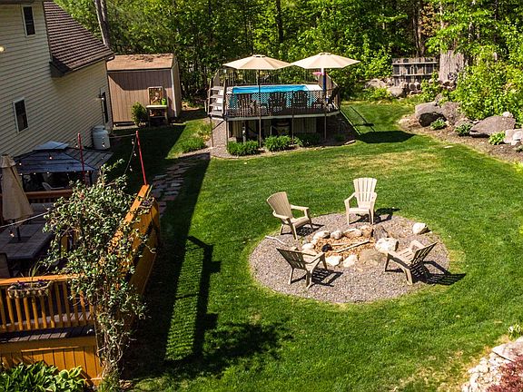 Your dream home is here! Rock walls and extensive landscaping surround this beautiful home. Lots of extras: new hardwood flooring, cherry kit cabinets, 1st floor laundry room, office or formal dining room w/ wainscoting, living room w/ corner gas fireplace master w/ walk in closet and private bath, plenty of storage spaces, rec room over garage.The outside is graced with a fire pit, outside patio area near above ground pool, new shed, resealed driveway, 14 head irrigation system. partially finished theater room in basement. Just move in!!