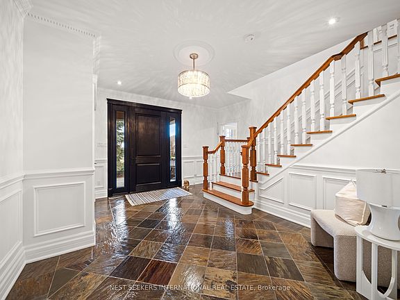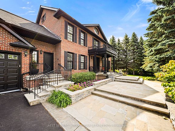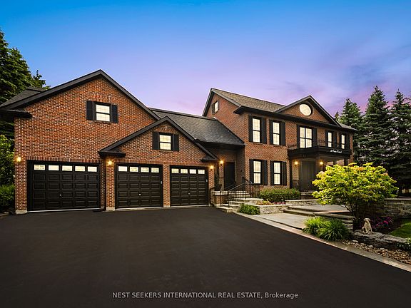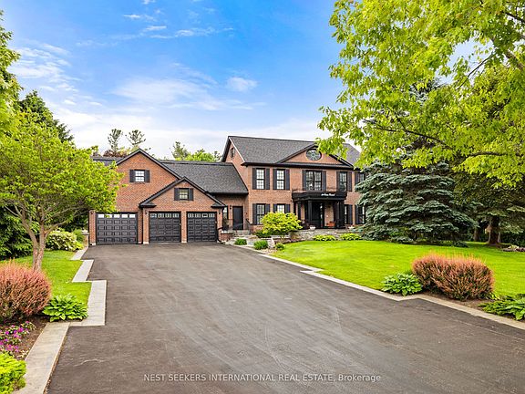 Welcome to this exceptional family estate, where refined elegance meets everyday comfort all set against a backdrop of natural beauty. Beautifully located in a prestigious estate community and set on over an acre, this thoughtfully designed home offers an abundance of high-end features and luxurious finishes. From the moment you arrive, you'll appreciate the care and attention that's gone into every detail. Inside, the heart of the home is a spectacular gourmet kitchen designed with both form and function in mind, complete with premium appliances and elegant finishes. The two-storey family room features soaring windows that flood the space with natural light and overlook the lush gardens, anchored by a stunning wood-burning fireplace that adds warmth and charm. The main floor also includes a private office, formal living and dining areas with walkouts to a secluded terrace, and a convenient second-floor laundry room. Upstairs, generously sized bedrooms provide comfort and privacy, including a large loft area that can easily be converted into a 5th bedroom. The finished lower level offers a full second kitchen, ample storage, a walk-up to the garage, and an ideal space for extended family or entertaining guests. Step outside and experience true resort-style living in the beautifully landscaped backyard. Features include an 18 x 38 sports court style in-ground pool, relaxing outdoor jacuzzi, Muskoka-style fire pit, vegetable garden, and a fully equipped outdoor kitchen with integrated sound system. The property also offers full irrigation throughout the front and backyard, servicing all gardens and lawn areas, making maintenance effortless. With three oversized garages, beautiful surroundings, and a location that offers both serenity and prestige this meticulously maintained home is truly a rare find. If you're seeking privacy, space, and timeless quality in a quiet upscale neighborhood, your search ends here.
