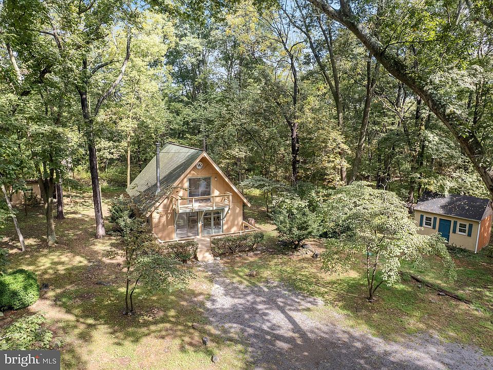 Welcome to 59 Paddock Place, a peaceful chalet-style retreat tucked away on nearly an acre of wooded privacy in Charles Town. Just minutes from downtown shops, restaurants, and conveniences, this property offers a rare opportunity to enjoy a tranquil setting without sacrificing accessibility. The main level includes a spacious bedroom, full bathroom, and laundry room, making one-level living both easy and comfortable. You’ll also find a bright and inviting open-concept layout featuring a cozy wood stove, large windows that fill the space with natural light, and a beautifully updated kitchen with quartz countertops and stainless steel appliances. The dining area flows seamlessly from the kitchen, creating the perfect spot for everyday meals or entertaining. Upstairs, there are two additional bedrooms, a shared full bath, and a versatile bonus room ideal for a home office, reading nook, creative space, or extra bedroom. With high-speed Comcast Xfinity internet available, working from home or streaming your favorite shows is simple and reliable. Step outside to the expansive front deck, a perfect place to relax, entertain, or simply enjoy the peaceful surroundings. Multiple sheds offer excellent storage or workshop potential, and the backyard backs to mature trees for added privacy and serenity. Whether you're searching for a year-round residence or a weekend getaway, 59 Paddock Place offers a warm and inviting woodland retreat just minutes from everything Charles Town has to offer. This one-of-a-kind property is filled with charm, space, and character you won’t want to miss, plus the added benefit of no HOA!