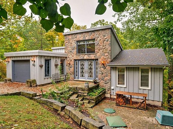 Welcome to this hidden sanctuary with breathtaking woodland views from every room in this home. This contemporary home is set on nearly 6 acres of forestry & completely immersed in nature's beautiful surroundings with secret waterfalls, a majestic stream & vibrant wildlife that animates the wilderness. Step inside and be greeted by an alluring & grand foyer with vaulted ceilings. The main level starts off with a spacious family room with a 3-way stone wood burning fireplace, Brazilian hardwood floors, & wall to wall windows to take in the incredible views. Next is the dream kitchen you've been waiting for that combines function with the perfect entertaining set up. This culinary haven features soapstone countertops, custom hardware, undermount lighting, a wet bar sink, a 10ft island, & top of the line appliances such as Thermador gas stove, steam oven & more. Adjacent to the kitchen is a cozy glassed-in sunroom with panoramic views of the lush forest & a balcony that stretches all along the back exterior of the home. The main level also offers a spa-like bathroom with a jetted bathtub and an infrared heat lamp to keep you warm and toasty. Beside is your primary bedroom with a walk-out to the balcony and a 12ft x 4ft closet with a window. Downstairs, find a rec room with another wood-burning fireplace and a full wall of windows for another spectacular view. 2 additional bedrooms, a 3-piece bathroom, a laundry room, & a one-of-a-kind office space with a walk-out to the backyard complete this level. The backyard includes a pizza oven and a hot tub, providing you with a space that boasts the utmost relaxation. This retreat is complete with an eight-car driveway, an EV charger and a one-car garage with inside entry. Located in one of Grimsby's most desirable areas, this remarkable property not only backs onto the Bruce trail & Grimsby Bench Nature Preserve but offers such a short distance to restaurants, highways & all other amenities. Don’t be TOO LATE*! *REG TM. RSA.