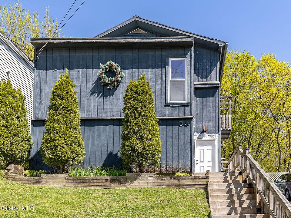 Multiple offers. Best and final due on Sunday, 4/30/23 at 6 pm. Move right in to this awesome Rensselaer home just minutes from Albany and all the amenities the Capital Region has to offer. This two bed, two bath home has beautiful vinyl plank flooring on the first floor from the eat-in kitchen to the living room. The living room has cathedral ceilings and a lofted primary bedroom located on the second floor. There is a bedroom and full bath on both levels of the home. The large primary bedroom has a full bath and a deck looking out over the private backyard. First floor walk out to your large wrap around deck and backyard with ample room for entertaining, carport that is great for storage and a fenced private setting that backs to woods. Sold As-Is