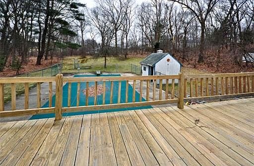 OPEN HOUSE 8/19 - 1:00-2:30Attention Rehabers, Builders, & Buyers!!!, $82,110 below Town assessment. Lovely Contemporary Cape on quiet dead-end street abutting conservation land. Open floor plan featuring: living rm, dining rm w/ fireplace and bar. Large picture windows overlooking deck and 31,799 sqft private yard. 2 bdrms on 2nd flr 1 bed/den on 1st flr. Spacious eat-in- kitchen, 2.5 baths, laundry on 1st flr, exposed beams, French doors, and LL family rm with ½ bath, 2 car gar. & in-grnd p
